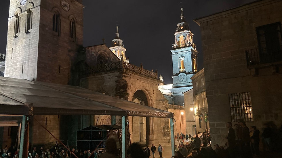 But it’s a party in the Lugo, so we escape out onto the crammed streets and walk the walls around Old Town – the world’s biggest surviving Roman walls, how’s about that – before joining the crowds below for some weird music performances and standard wine. As all munis, our albergue shuts at ten though so it’s not a long night. But pretty.
